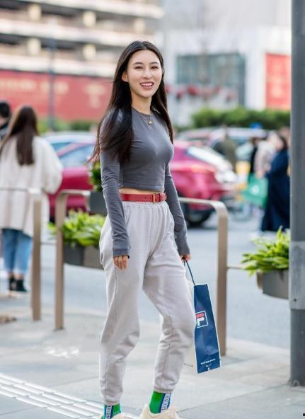 4. 街头潮流风:灰色运动T恤搭配亮色运动裤,潮流感十足,适合追求个性的你。